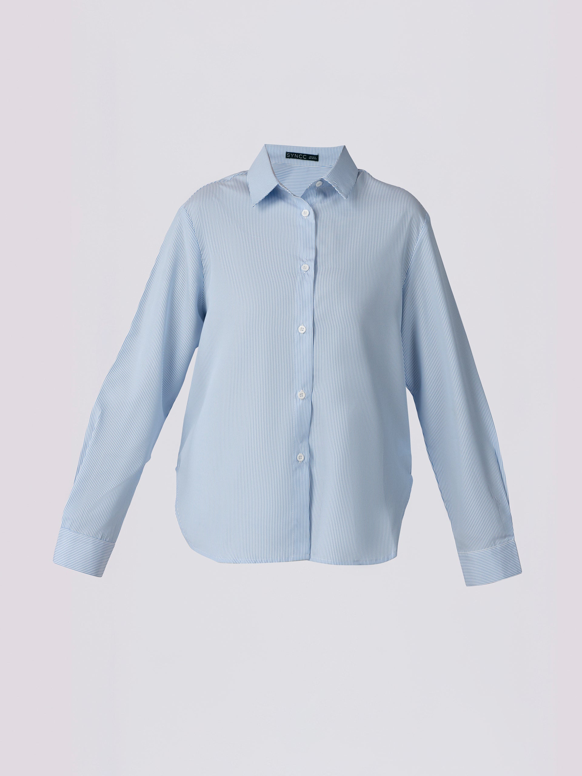Button-down top in a lightweight, breathable fabric. Featuring a classic collar and front button closure. Designed with long cuffed sleeves for a polished and versatile look.