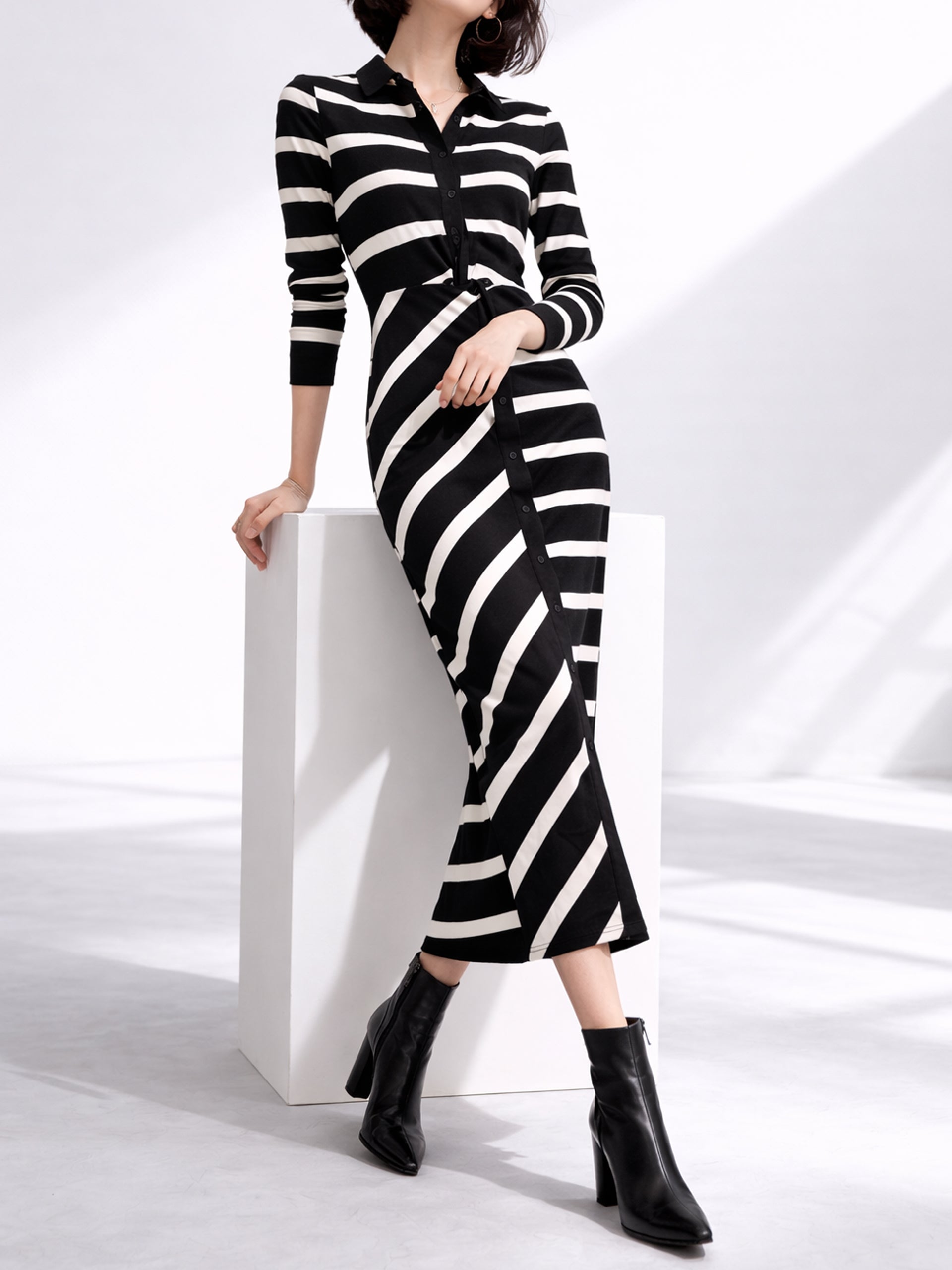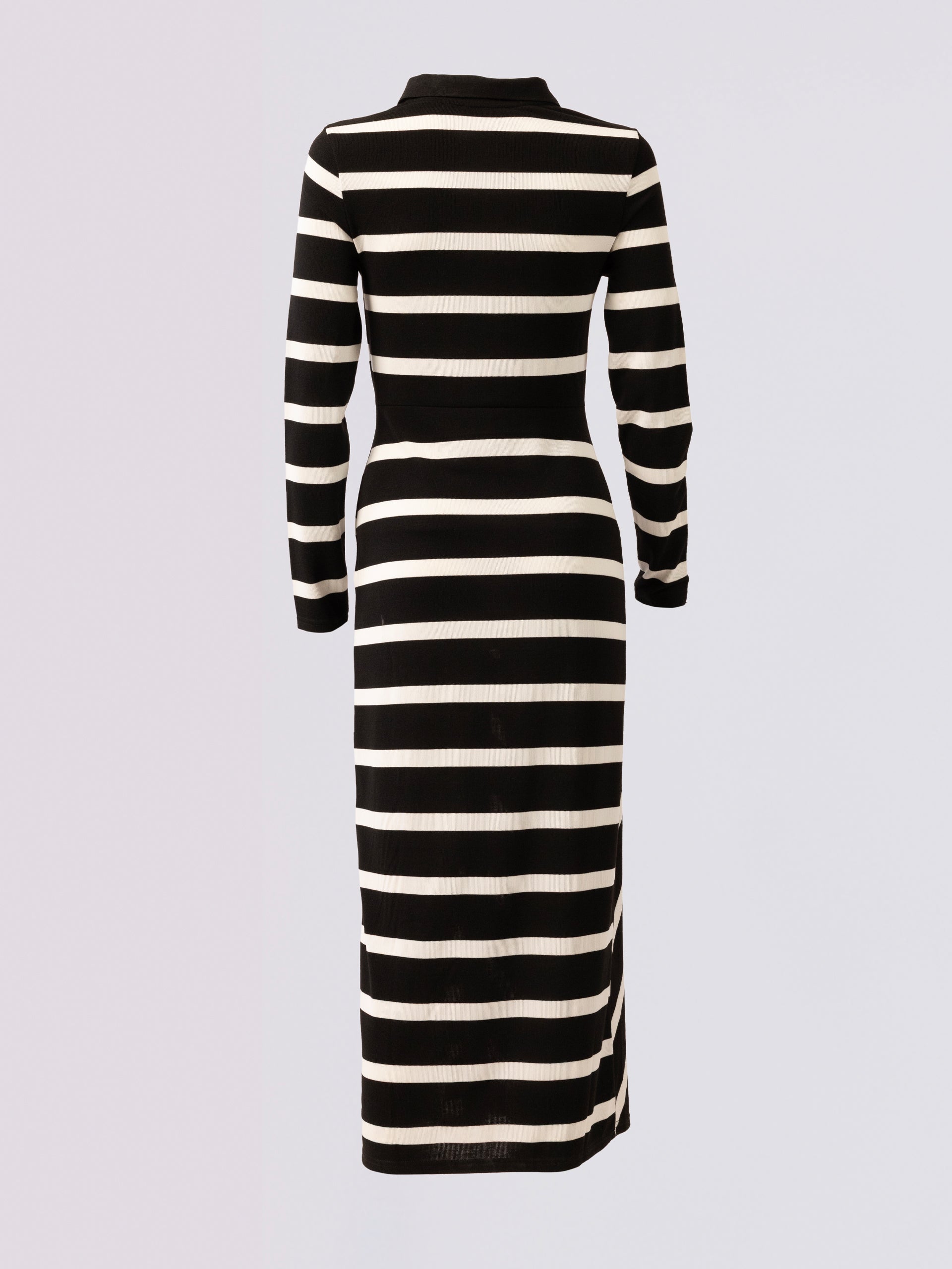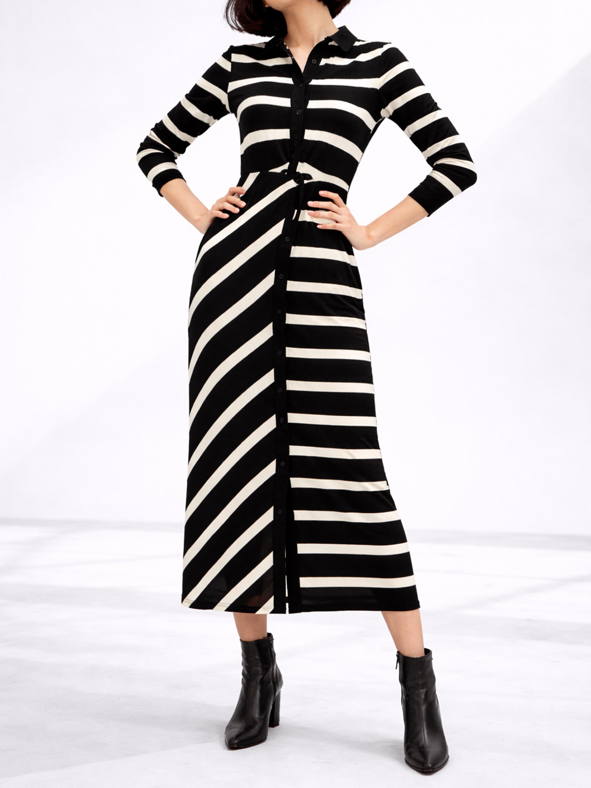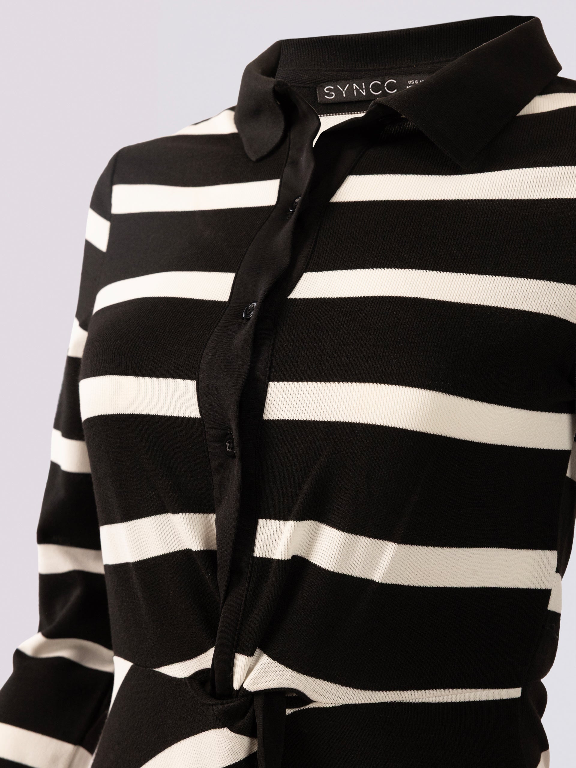 A classic striped long shirt dress with a stylish knotted front and long sleeves, perfect for day-to-night looks.
